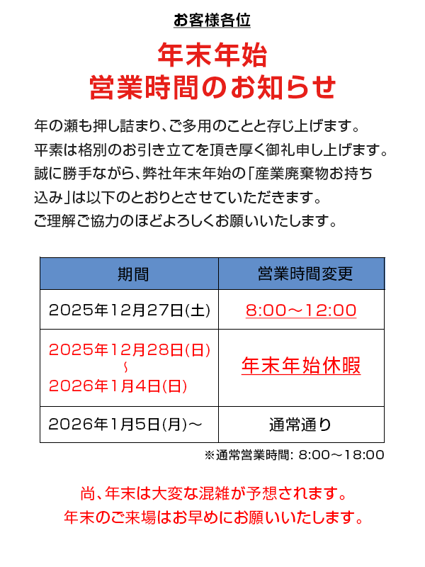 令和5年9月1日より、お申込み3営業日前までのご予約で、かつ1件の予約につき運搬事業者様1社あたり5現場まで、というご依頼に限り受け入れる方式に変更させて頂くことになりました。